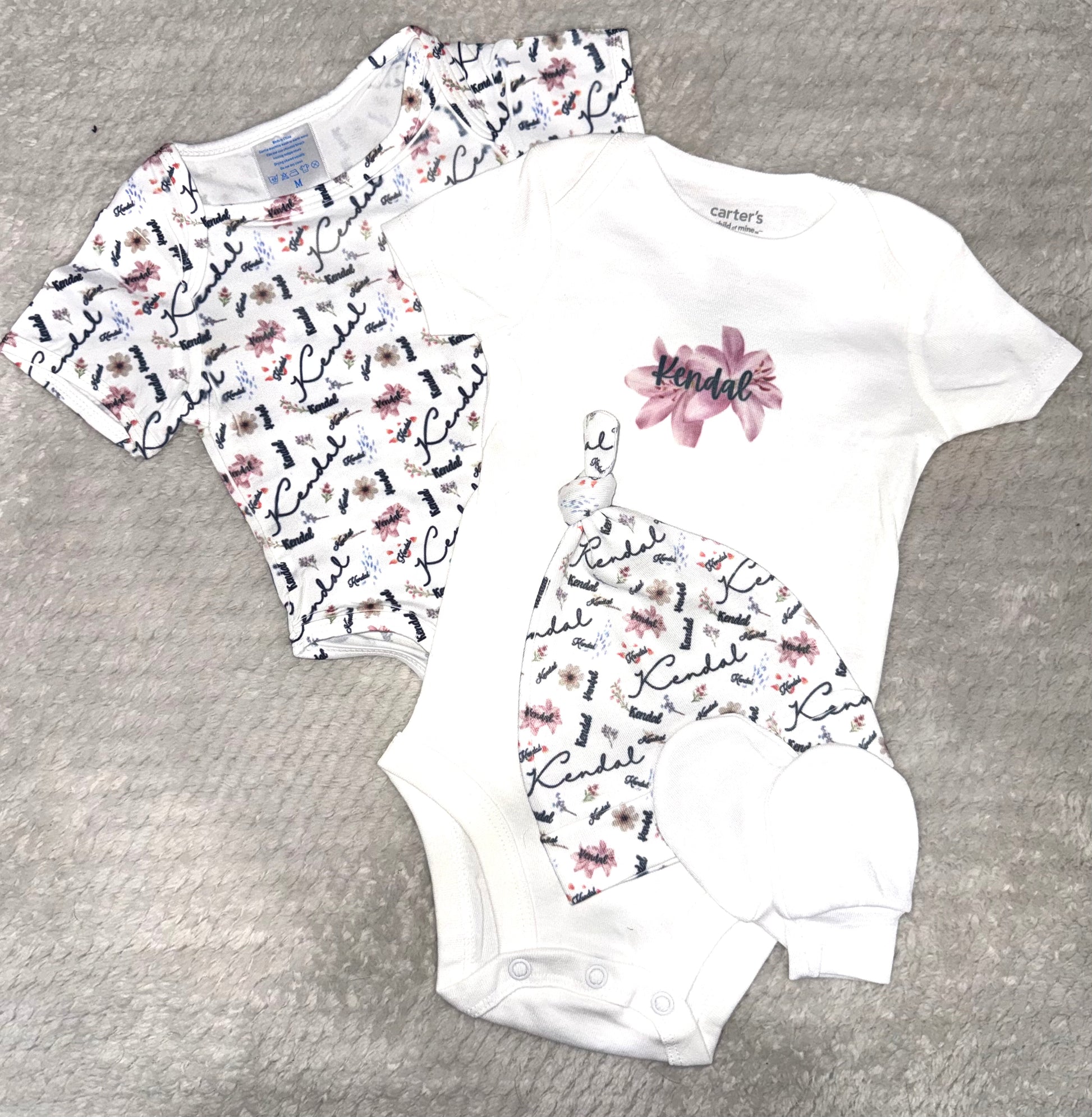 • All-over print name onesie