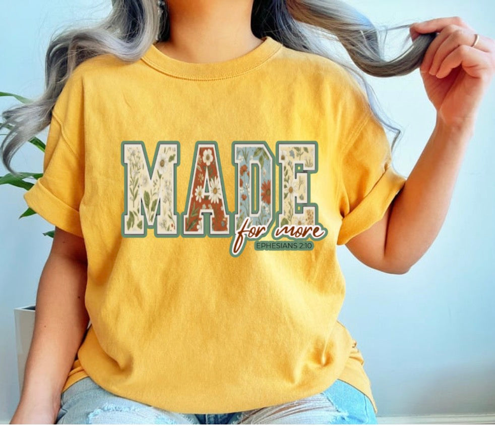 Our Made for More tee is inspired by Ephesians 2:10, reminding us that we are God’s workmanship, created intentionally and lovingly for more than we can see right now. This design serves as a gentle yet powerful reminder that your life has meaning, your steps matter, and God is still writing your story.